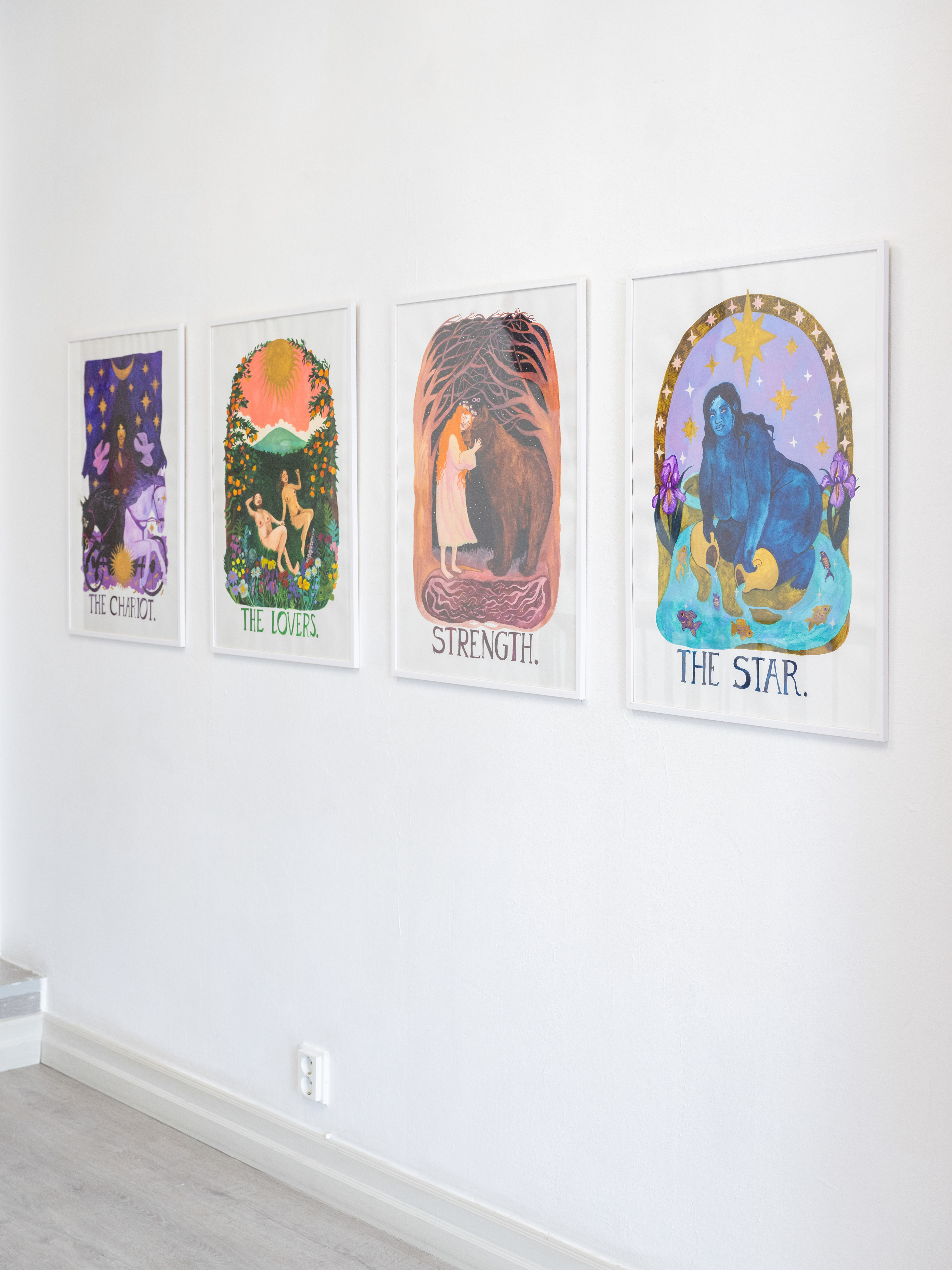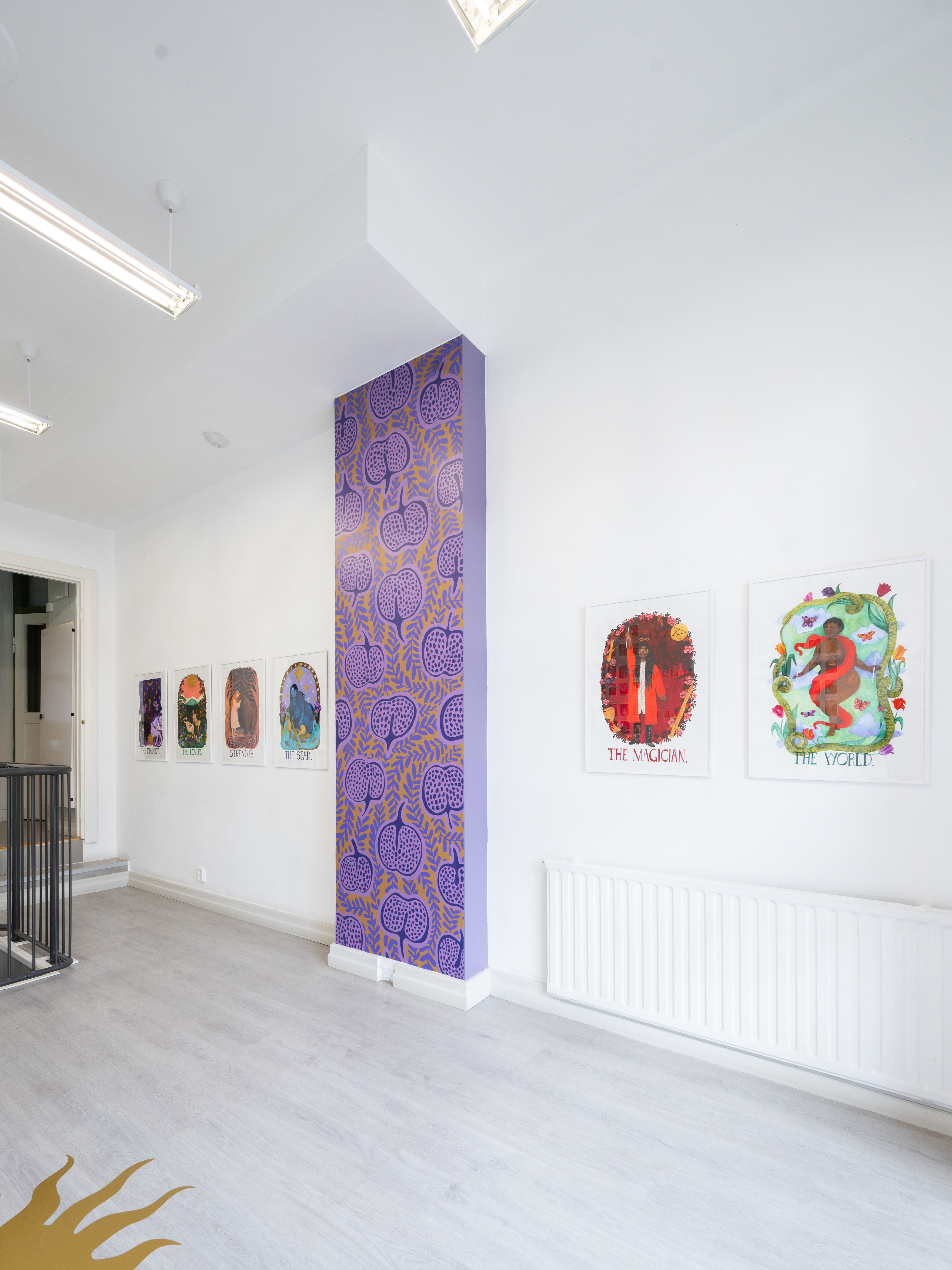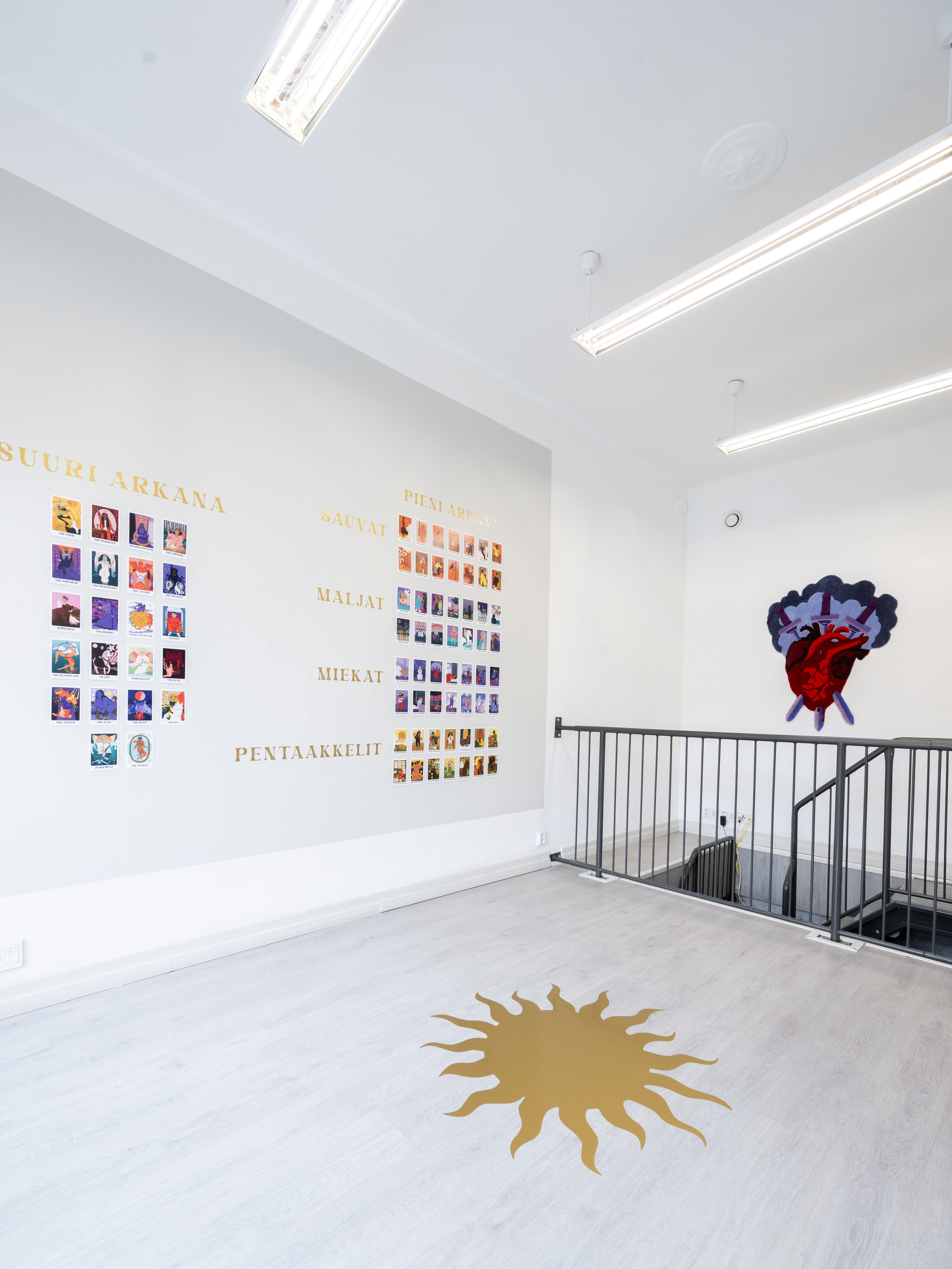 Saara Obele’s (b. 1984) exhibition opens a door to the fascinating world of tarot cards. Tarot – The Knowledge Within Us is based on a deck of cards and a guidebook illustrated by Obele and written by Noora Al-Ani and Sophia Wekesa (Like 2022). On display are all 78 Tarot cards, watercolor and gouache paintings inspired by them, and a Three of Swords tapestry.